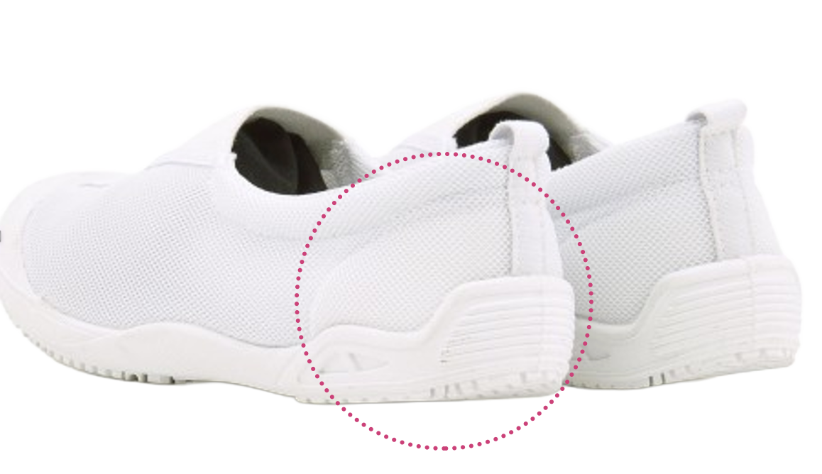 かかとに芯があることで後足部を安定させ、しっかりと足を守ることができます。
