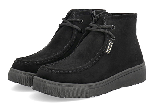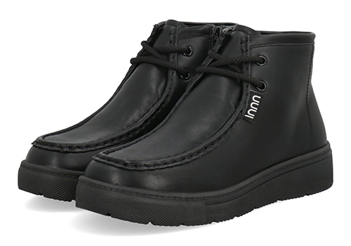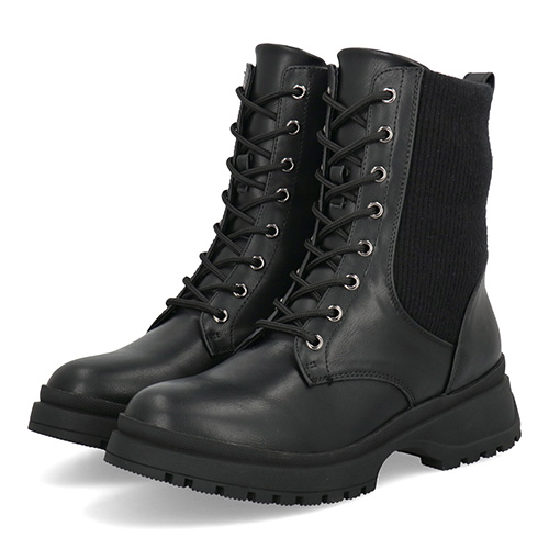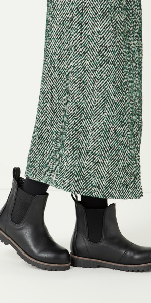秋口から使える丁度良い丈感が魅力のミドルブーツは、艶やかなブラックで足元を引き締めてくれます。強めの印象のラギットソールをすっきりと女性らしくアレンジすることで、オールマイティなスタイルに。