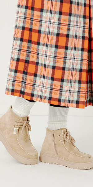 ワークスタイルをベースにしたマウンテンブーツながら、シルエットやカラーリングで愛らしさも忘れない仕上がりに。程よいボリューム感が秋冬コーデのバランスを取ってまとめてくれます。