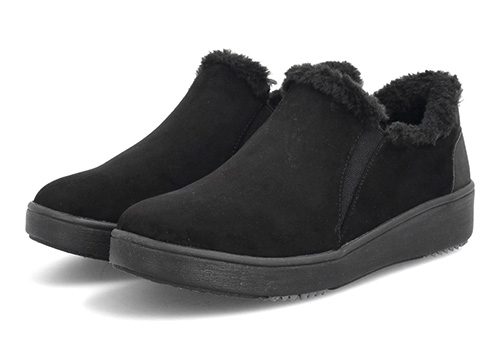 シンプルですっきりとしたデザインに季節感のあるアッパー素材がよく映えるルックスです。あたたかな履き口のボアやチラリとのぞくサイドゴアのラインも、愛らしい見た目で足元のアクセントになっています。