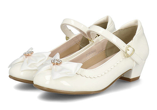大人っぽいヒールスタイルは、女の子の憧れ。ツヤ感がリッチなエナメルのアッパーはあえてのワントーンで、華やかでもどこか落ち着いた上品な仕上がりです。背伸びしすぎない憧れスタイルで、特別な1日をもっとうれしく過ごせる、そんな一足です。
