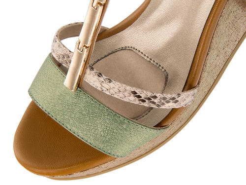 Tストラップに配したゴールドのメタリックモチーフが、アクセントになったウェッジサンダル。縦ラインを強調するメタルのラインが、足元をすっきりとキレイに見せてくれます。上品な肌見せのヌーディなデザインが、女性らしいレッグラインを強調。足を覆う面積が少ないデザインですが、アンクルストラップで足首をしっかりと支えるので、安定感のある履き心地です。中敷にはふんわりとした柔らかなクッションを採用し、足の疲れを和らげてくれます。負担のかかりやすい前足部は、前滑りしにくく吸湿性のよい素材に切り替え、快適性をアップ◎ またつま先に厚みのあるプラットフォームにより、ヒール傾斜を感じさせないフラットな履き心地。歩きやすさとスタイルアップを同時に叶えます♪ シャイニーな光沢が夏の日差しに映える大人のこなれ感を備えた一足。※展開サイズ:レディース