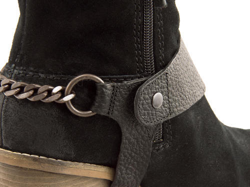 クラシカルな表情にカウボーイテイストを取り入れたハーフブーツ。レザーの質感がビンテージ風の味わい深い仕上がりになっています。足首のチェーン付きベルトは取り外し可能なので、シンプルなペコス風ブーツとしても使える2WAY仕様。サイドファスナー搭載によりスムーズな着脱をアシスト。歩行時に最も力のかかる母子球に着眼し、ピンポイントでサポートする「Cushion Plus(クッション・プラス)」をインソールに搭載し、クッション性のあるふんわりとした履き心地で足への負担を軽減します。ちょうど良い高さのヒールで美脚効果もサポートしながら、オシャレに快適に履いて頂けます。※展開サイズ:レディース