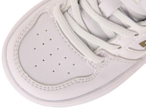 軽量で衝撃吸収力の高いUNILITE(ユニライト)ソールを採用したベビー用ハイカットモデル☆ ピュアなオールホワイトカラーに、ゴールドロゴがアクセントになっています☆ ボリュームのある見た目ながら、片足約85g(14.0cm)の超軽量設計!ベビーの柔らかい足を優しく守ります。タン裏の両側をゴムでつなげることで大きく開き、足にフィットする設計に◎ シューレースはゴム紐を採用し、脱ぎ履きしやすくなっています。ボリュームのある可愛らしいフォルムは、ショート丈ボトムスとの相性もバッチリです♪ 大人モデルもご用意しているファミリーペアモデルですので、パパやママとリンクコーデもしていただけます♪※展開サイズ:キッズ